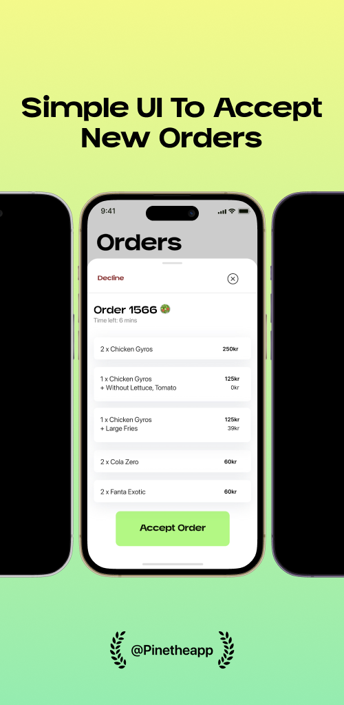 Me and a two friends built Pine in evenings and weekends in November/December 2024. Well actually, it was two apps, one for consumers and one for merchants. It has ~1000 users, ~30 restaurants and ~400 group orders done.